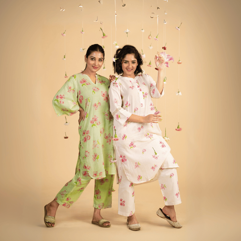 Discover the beauty and exclusivity of our signature prints, crafted with care and passion at our studio. The process begins as a hand-painted watercolor, converting it into digital print on premium fabrics like linen, Chanderi and cotton . Each print is an exclusive creation, available only through our brand.