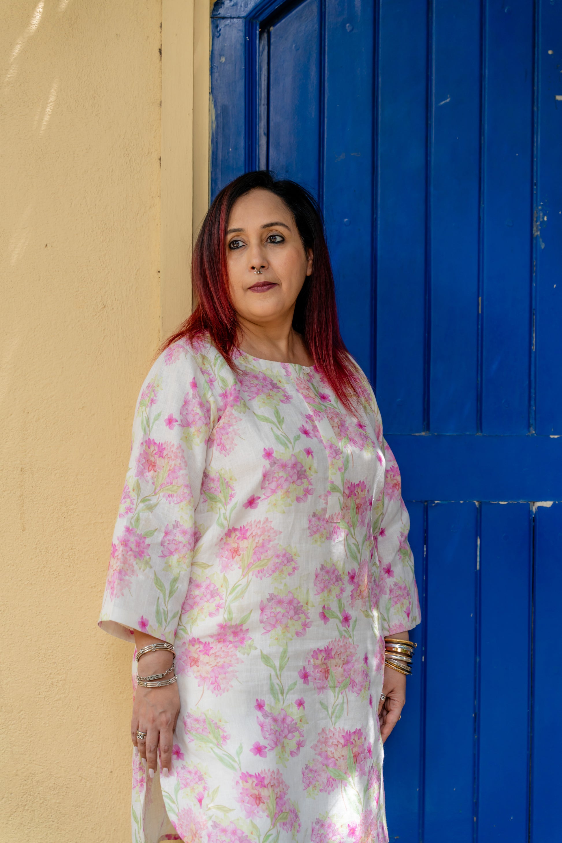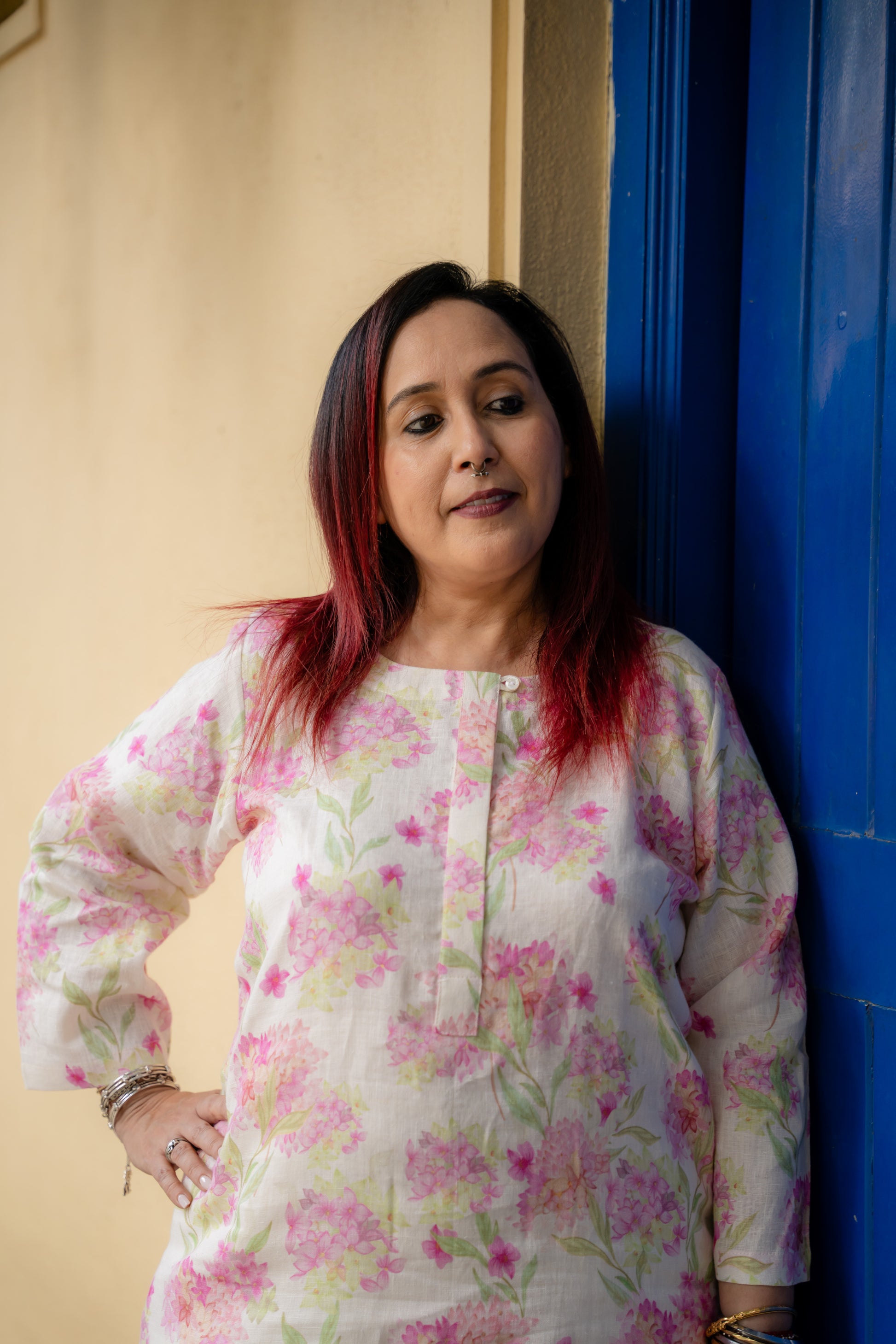 Hyderangea print kurta set with linen pants